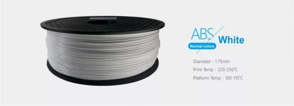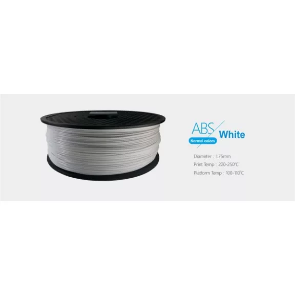 Fehér színű, 1 kg-os kiszerelésű, 1,75 mm átmérőjű ABS tekercs minden FDM típusú nyomtatóhoz.