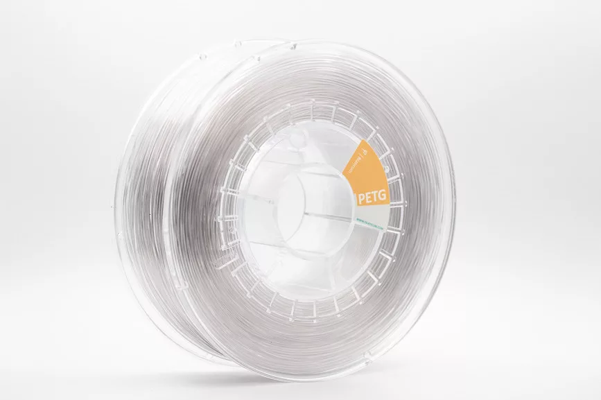Átlátszó, 1kg-os kiszerelésű, 1,75 mm átmérőjű PETG tekercs minden FDM típusú nyomtatóhoz.