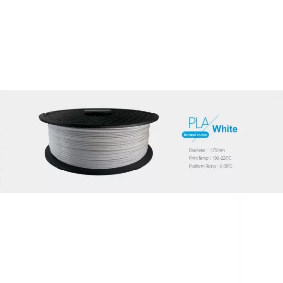 Fehér színű, 1 kg-os kiszerelésű, 1,75 mm átmérőjű PLA tekercs minden FDM típusú nyomtatóhoz.