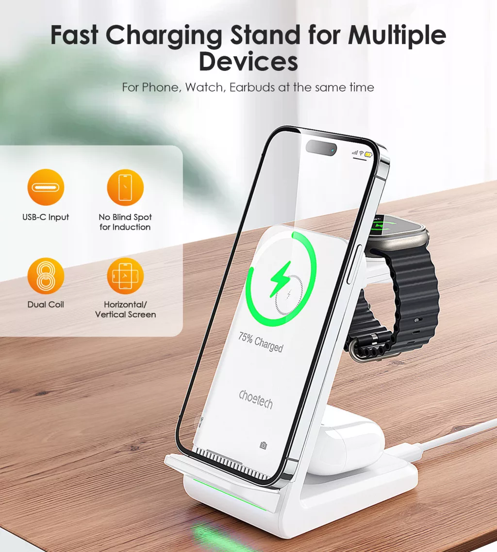 Choetech 3-1ben (Mágneses Wireless,fehér), töltő