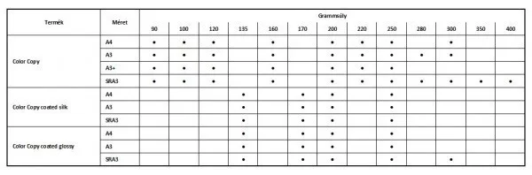 A magas minőségű Color Copy választékot speciálisan a modern digitális nyomtatáshoz fejlesztették ki, kiváló simaságú, fehér papír mindenféle kommunikációhoz. A Color Copy tűéles nyomatot és ragyogó színeket garantál, különösen a digitális nyomtatásnál.