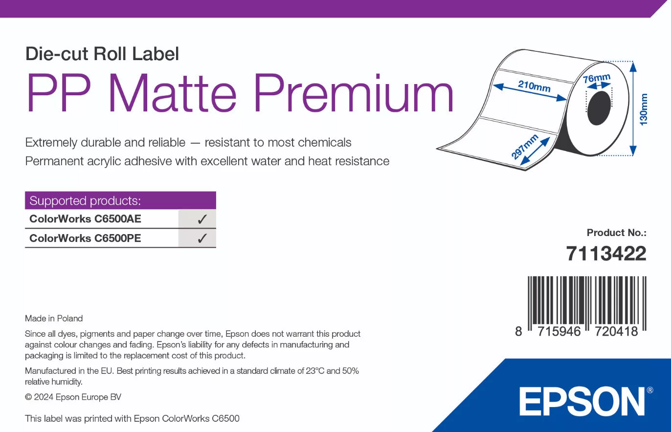 PP Matte Label Premium, Die-cut Roll, 210mm x 297mm, 184 Labels