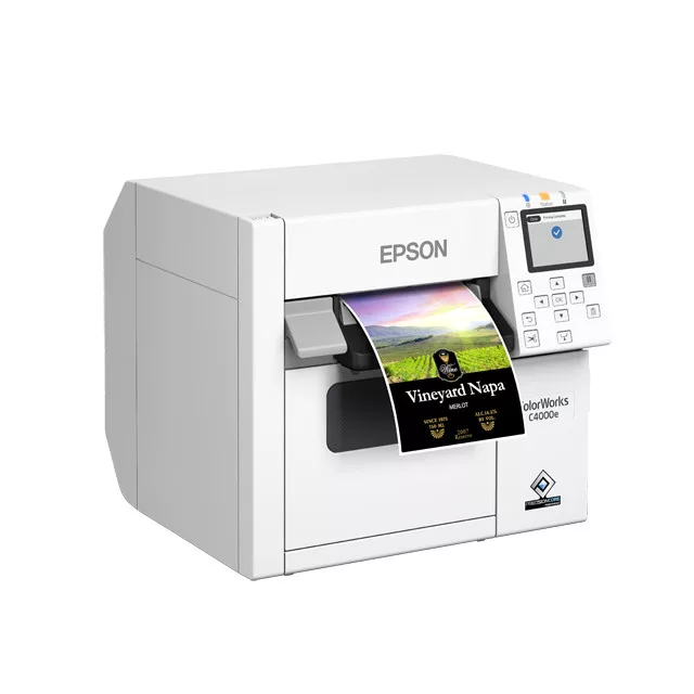 Asztali színes címkenyomtató FÉNYES fekete tintával *PrecisionCore nyomtatófej *Nyomtatási sebesség: max.100 mm/sec (300x600dpi) *Nyomtatási felbontás: max.1200x1200 dpi *Nyomtatási szélesség:max.108 mm *Formátumok: Tekercs (4"-os külső átmérő), Leporelló papír *Típus: folytonos címke, folytonos papír, formára vágott címke, fekete jeles papír, fekete jeles címke *Automatka kés *A doboz tartalma: Hálózati adapter, Hálózati kábel, Színenként cserélhető tintapatronok, Címke papírtekercs, Maintenance box, Papírtálca, USB-kábel *Kellékek: C4000e BK: C13T52M140 C: C13T52M240 M: C13T52M340 Y: C13T52M440 Szemetes: C33S021601 *Garancia: 12 hónap beküldős/bevivős + opcionális 3/4/5 éves CoverPlus garanciakiterjesztések