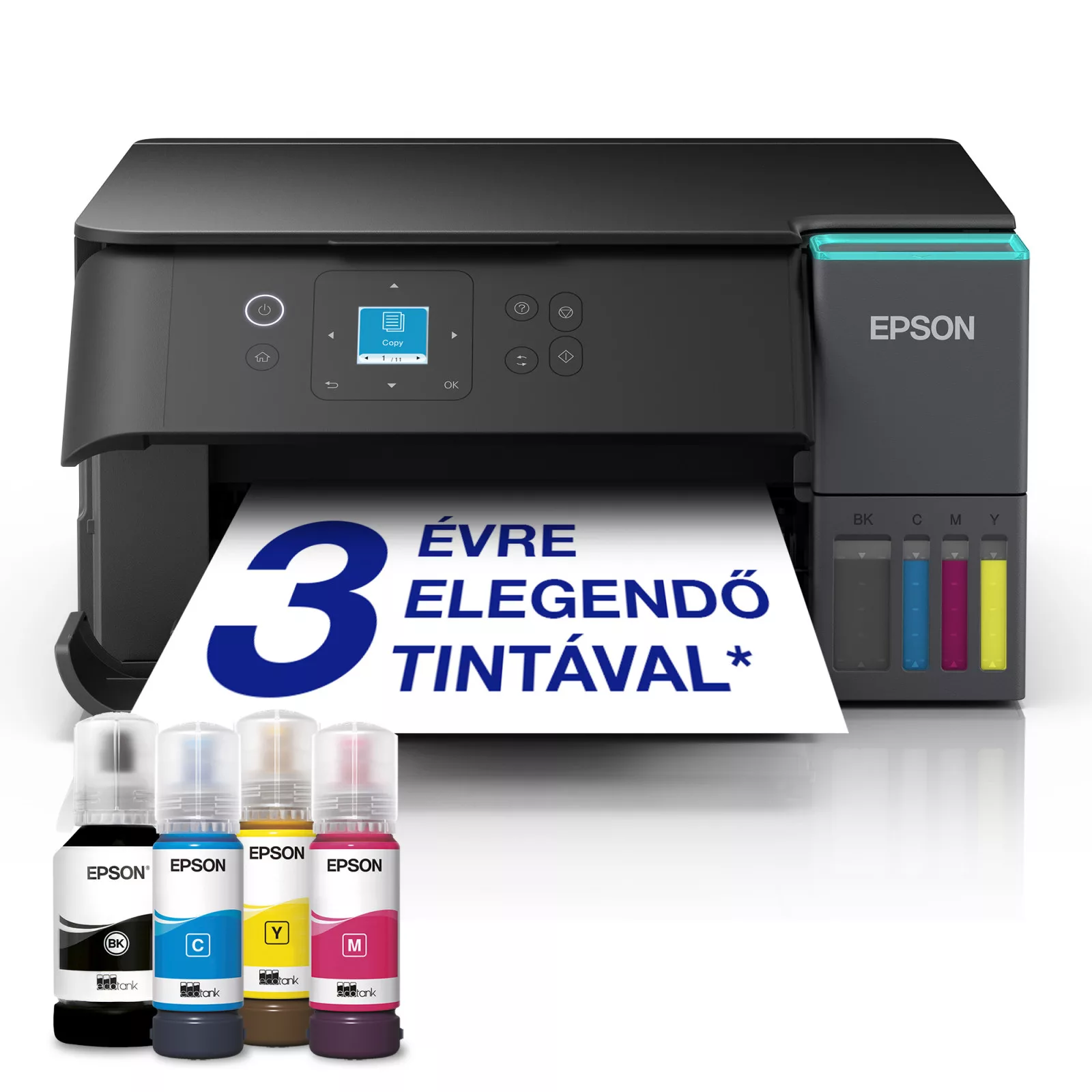 **Regisztráció esetén 3 éves kiterjesztett garancia elérhető 2026.03.31-ig! Az igényléseket a termék (végfelhasználói) vásárlásától számított 30 napon belül kell beküldeni! Regisztráció és részletek: https://www.epson.hu/hu_HU/promotions/extended-warranty *Multifunkciós: nyomtat, szkennel, másol *Nyomtatási sebesség (ISO): 15 lap/perc mono, 8 lap/perc színes *Nyomtatási felbontás:4.800x1.200 dpi *Tinták: No.101, black [Pigment] 127ml, cyan/magenta/yellow [DYE, VÍZBÁZISÚ] 70ml *Papírformátumok: A4 (21.0x29,7 cm), A5 (14,8x21,0 cm), A6 (10,5x14,8 cm), B5, C6 (Boríték), DL (boríték), No. 10 (boríték), Letter, 10 x 15 cm, 13 x 18 cm, 16:9, Felhasználó által definiált, Legal *Kétoldalas nyomtatás (DUPLEX) *Papírtálca kapacitása: 100 lap *Kiadó papírtálca:30 lap *Papírsúly: 64 g/m2 - 300 g/m2 *Szegély nélküli nyomtatás *Csatlakozók: USB, Wi-Fi, Wi-Fi Direct *LCD kijelző: színes, 3,7cm *Mobil és felhőalapú nyomtatási szolgáltatások: Epson Connect (iPrint, Email Print, Remote Print Driver), Apple AirPrint, Mopria, Epson Smart Panel App, Epson Creative Print App