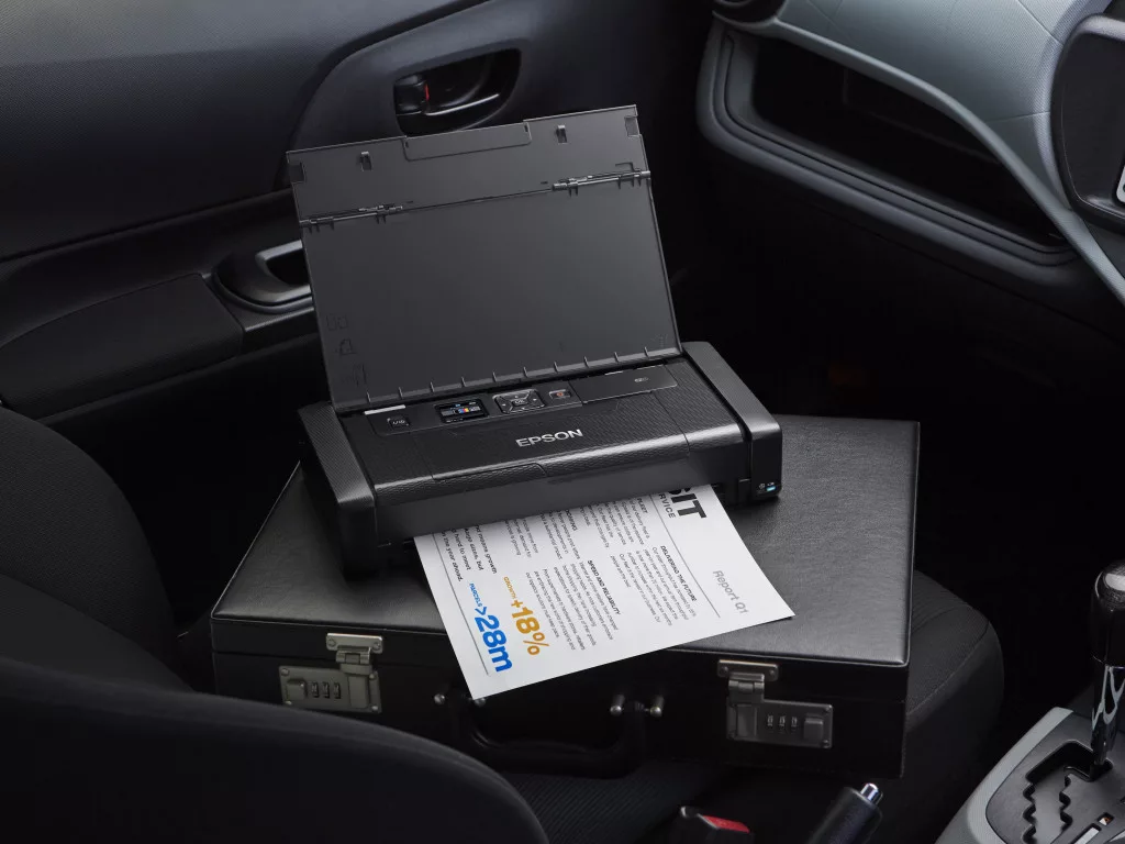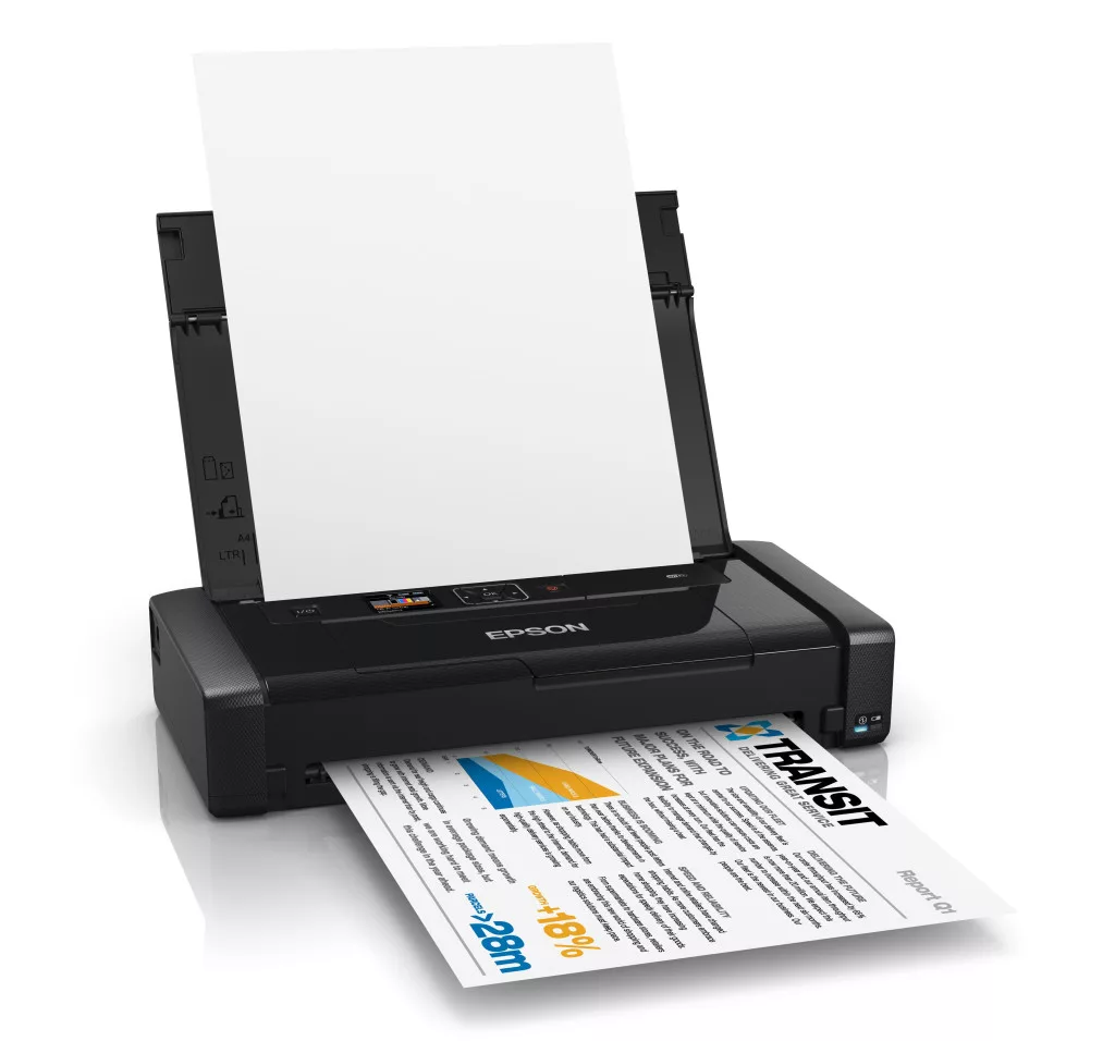 *Hordozható/mobil A4-es színes tintasugaras nyomtató BEÉPÍTETT AKKUMULÁTORRAL *Nyomtatási sebesség ISO: 7 lap/perc mono; 4 lap/perc színes / AKKUról: 4 lap/perc mono, 2 lap/perc színes *AKKU kapacitása: 100 mono oldal, 50 színes oldal *Töltési folyamat: AC adapterrel, USB csatlakozóval, USB autós átalakítóval, külső USB akkumulátorokkal *Teljes újratöltési idő: 3 óra *Nyomtatási felbontás: 5.760 x 1.440 dpi *Pigment tinták BK: T2661 (5,8ml), színes: T2670 (6,7ml), Maintenance Box: T2950 *Papírformátumok: A4 (21.0x29,7 cm), A5 (14,8x21,0 cm), A6 (10,5x14,8 cm), B5, C6 (Boríték), DL (boríték), No. 10 (boríték), Letter Legal, 10 x 15 cm, 13 x 18 cm *Használható papírsúly: max. 300 g/m2 *Papírtálca kapacitása: 20 lap vagy 5 fotópapír *Csatlakozók: Vezeték nélküli LAN, IEEE 802.11b/g/n (WiFi 4), Wi-Fi Direct, USB 2.0 Mikro-B *Mobil és felhőalapú nyomtatási szolgáltatások: Epson Connect (iPrint, Email Print, Remote Print Driver), Apple AirPrint, Google Cloud Print *LCD kijelző: színes, 3,7 cm átlójú *A doboz tartalma: 2x Karbantartó doboz, Tápegység, Tintapatronok (1 fekete, 1 háromszínű patron), Készülék, Mikro-USB kábel *Garancia: 12 hónap bevivős/beküldős