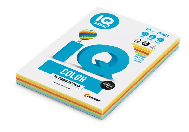 Sokoldalúan alkalmazható, magas minőségű, anyagában színezett IQ Color másolópapír. Kétoldalas másolásra és nyomtatásra is alkalmas, felhasználható tintasugaras- és lézernyomtatókba, másológépekbe. FSC, EU Ecolabel és Green Range tanusítvány.