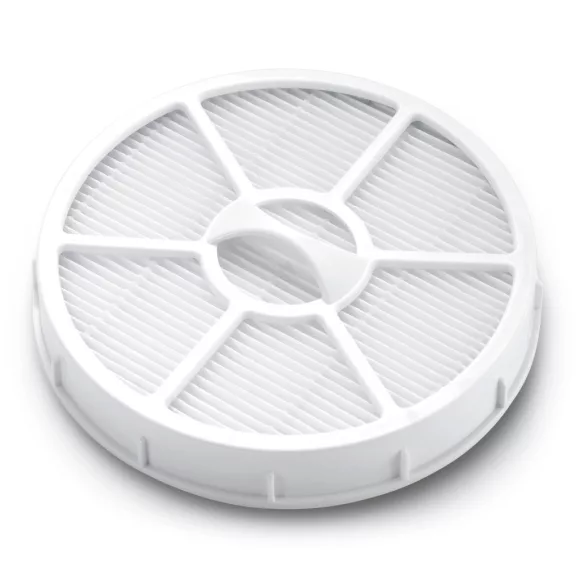 A Kärcher VC 3 többciklonos porszívóhoz készült HEPA 13 szűrő (EN 1822:1998) biztonságosan és megbízhatóan szűri ki a legfinomabb szennyeződéseket, például pollent és allergén részecskéket. Ez azt jelenti, hogy az elszívott levegő tisztább, mint a helyiség levegője. Ideális allergiások számára.