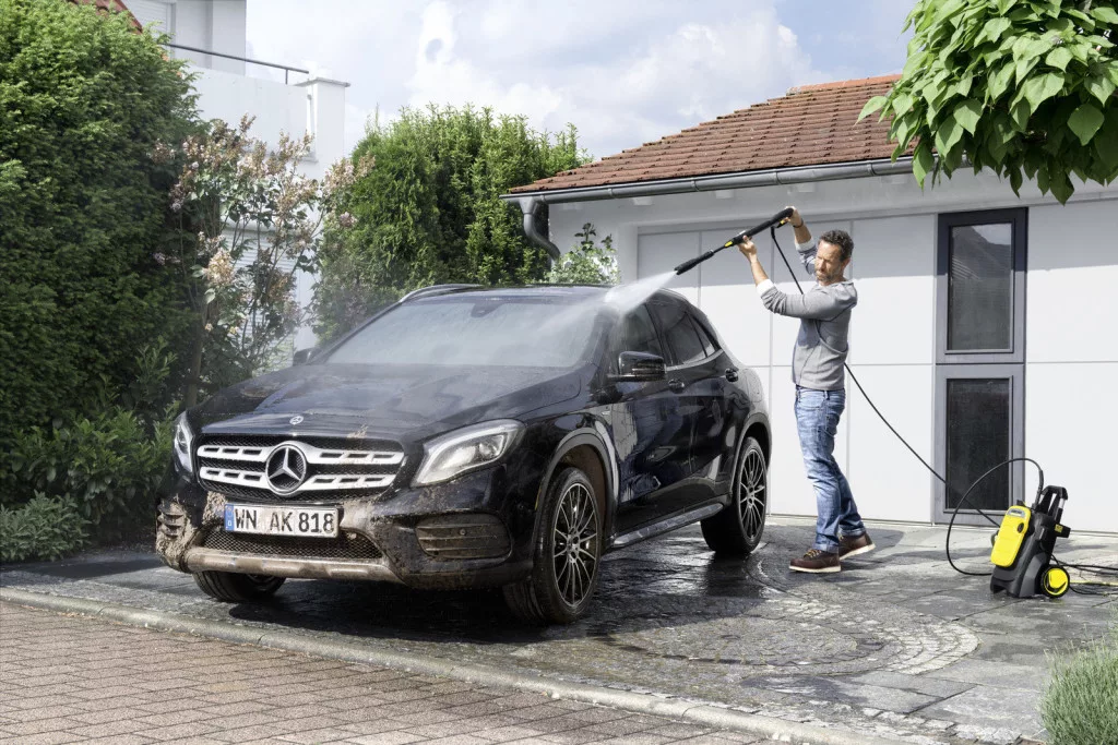 A K 5 Compact ötvözi a maximális kényelmet a kimagasló teljesítménnyel. Innovatív tömlőtárolási koncepciójának köszönhetően a magasnyomású tömlő a használatot követően egyszerűen feltekerhető a burkolat előlapjára, a szállításhoz pedig gumipánttal rögzíthető. Kompakt méreteinek köszönhetően a készülék könnyedén szállítható és bárhol eltárolható - akár a polcon vagy a csomagtartóban. A készülék vízszintes és függőleges állásban is használható, így még kényelmesebb munkavégzést biztosít. A felszereltséghez tartozik: két hordozó fogantyú, állítható magasságú teleszkópos fogantyú, Quick Connect szórópisztoly, 8 méteres magasnyomású tömlő, egy Vario Power szórószár (VPS), egy szennymaró és egy vízszűrő is. A vízhűtéses motorral felszerelt, 40 m2/óra felületteljesítményre képes K 5 Compact magasnyomású mosó ideális rendszeres használatra mérsékelt szennyeződésekhez.