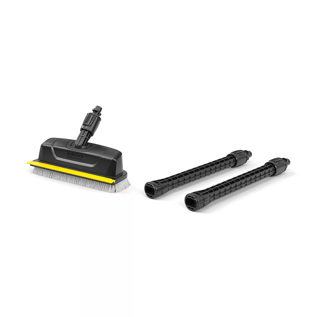 A PS 30 mosókefe ragyogó tisztítási eredményeket biztosít különböző felületeken. Erről 3 magasnyomású fúvóka gondoskodik, amelyek a makacs szennyeződést is feloldják. Ezáltal a PS 30 optimális segítőtárs a kis- és közepes méretű felületek, mint lépcsők és peremek megbízható tisztításában. A nehezen hozzáférhető helyek eléréséhez a kefefej 360°-ban elfordítható. Minden sima felületen használható az integrált gumiélű szennyeződés lehúzó a tisztítás után. Így a felesleges szennyezett víz gyorsan eltávolítható, a felület pedig azonnal újra használható. A magasnyomású sugár és a kefére gyakorolt kézi nyomás kombinációja a tisztítási teljesítményével minden hagyományos súrolót a sarokba állít. A mosókefe minden K 2 - K 7 kategóriájú Kärcher magasnyomású tisztítóval használható.