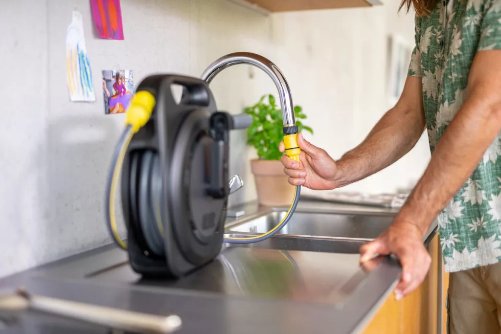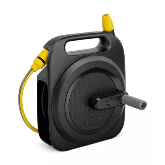 A HBX 2.10 tömlődoboz ideális megoldás az erkélyeken, tetőteraszokon és kiskertekben lévő növények öntözéséhez, vagy kempingezés közbeni használatra. A dobozt használatra készen szállítjuk, a kültéri használathoz szükséges összes tartozékot tartalmazza a csomag. A tömlő gyorsan és könnyedén feltekerhető az összecsukható forgókarral. Ráadásul a két Aqua Stop csatlakozóval ellátott, megbízható csepegésgátló rendszerrel a lecsatlakoztatás egyszerű és fröccsenésmentes. Ez, valamint a tartozékok és a tömlőkioldók intelligens tárolási koncepciója biztosítja, hogy a szőnyegen vagy a parkettán lévő vízfoltok a múlté legyenek. A kompakt méretnek köszönhetően a doboz a legszűkebb helyeken is tárolható beltérben, például a mosogató alatti szekrényben. Alternatív megoldásként a doboz a falra is felszerelhető. A tömlődoboz a Kärcher K 2-K 4 magasnyomású mosók táptömlőjeként is használható. * Tömlőhossz (m): 10 * Tömlő átmérője: 5/16" * Tömlő kapacitás (m): 10 (5/16") * Csatlakozótömlő (m): 2 (5/16") * Kefenyomás (bar): 24 * Szín: fekete