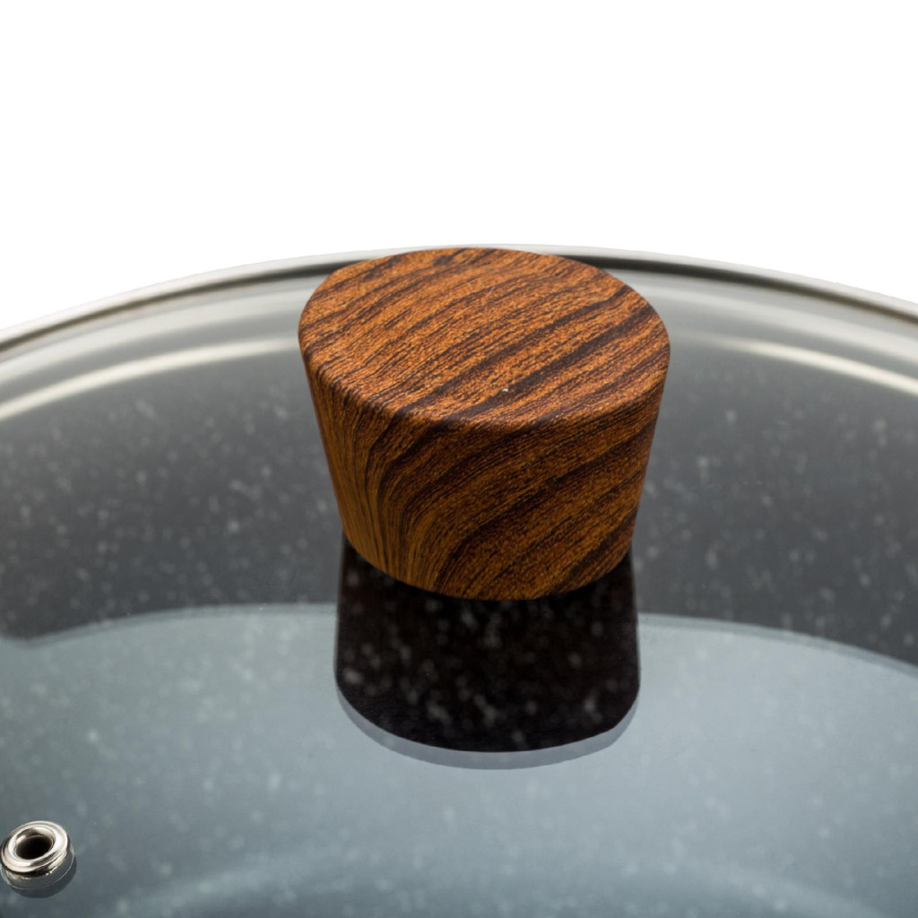 Egy lábast keres, amelyikkel egészségesen és hatékonyan készítheti el kedvenc ételeit? Fedezze fel a 24cm átmérőjű Nava 10-144-121 Nature tapadásmentes lábast, amely kiváló minőségű alumíniumból készült, és öt rétegű, tapadásmentes kőbevonattal rendelkezik. A kiváló és tartós tapadásmentes bevonat nagy ellenállást biztosít a karcolásokkal és a magas hőmérsékletekkel szemben. A gyártás során kis szén-dioxid-kibocsátású eljárásokat alkalmaznak, és a PFOA-t kiiktatják. Az öt rétegű tapadásmentes belső bevonat hosszú tartósságot biztosít a mindennapos használathoz, és tökéletes, egészséges főzési élményt garantál úgy, mintha természetes kövön sütne vagy főzne. A csúszásmentes, ergonomikus, fa mintázatú fogantyú még órákig tartó főzés után is hűvös marad, és könnyű használatot tesz lehetővé. A Nava Nature lábas hirtelen hőmérséklet-változásoknak ellenáll, és nagyon könnyen tisztítható. Minden tűzhelytípushoz alkalmas: gáz, elektromos, kerámia, halogén és indukciós. Aljának átmérője 18cm, űrtartalma 4,5 liter. Mosogatógépben is tisztítható. Használat előtt mosogassa el a lábast meleg, szappanos vízzel és puha szivaccsal. Minden használat előtt kenje be a lábas belső felületét olajjal vagy vajjal. Ne hevítse túl a lábast üresen, és távolítsa el a tűzhelyről, mielőtt a tartalma elpárologna. Alacsony vagy közepes hő elegendő a legjobb főzési eredmények eléréséhez. A lábas hirtelen hőmérséklet-változásoknak ellenáll. Hosszabb élettartam érdekében hagyja lehűlni, majd mosogassa meleg, szappanos vízzel és puha szivaccsal. Használjon fa, műanyag vagy szilikon konyhai eszközöket a tapadásmentes bevonat élettartamának meghosszabbítása érdekében. Soha ne vágja az ételt éles eszközökkel a lábasban. Használjon olyan tűzhelyet, amely azonos méretű vagy kisebb, mint a lábas alja. Ne hevítse túl a zsírt vagy az olajat füstölésig, égésig. Ne használjon fémszivacsokat, drótot vagy erős tisztítószereket. A tapadásmentes bevonat megfelel az élelmiszerrel való érintkezésre vonatkozó előírásoknak. A Nava Nature lábas nem csak a konyhájának praktikus kiegészítője, hanem hosszú távon megbízható társa is lesz az egészséges és ízletes ételek elkészítésében. Ne várjon tovább, tegye meg az első lépést a minőségi és ízletes főzés felé még ma!