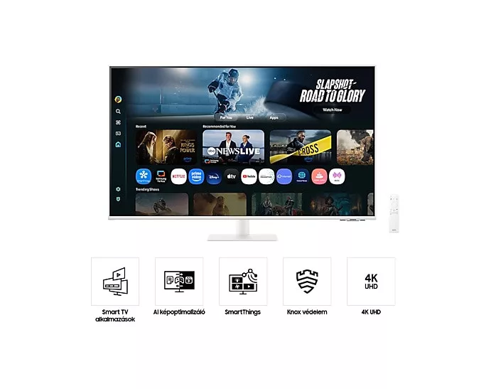 SAMSUNG 43" LS43FM701UUXDU Smart Monitor *Típus: VA monitor *Panel típusa: VA *Ívelt kijelző: nem *Képátló: 43 inch *Képarány: 16:9 *Felbontás: 3,840 x 2,160 *Fényerő: 300 cd/m2 *Statikus kontraszt: 3000 : 1 *HDR: HDR10
